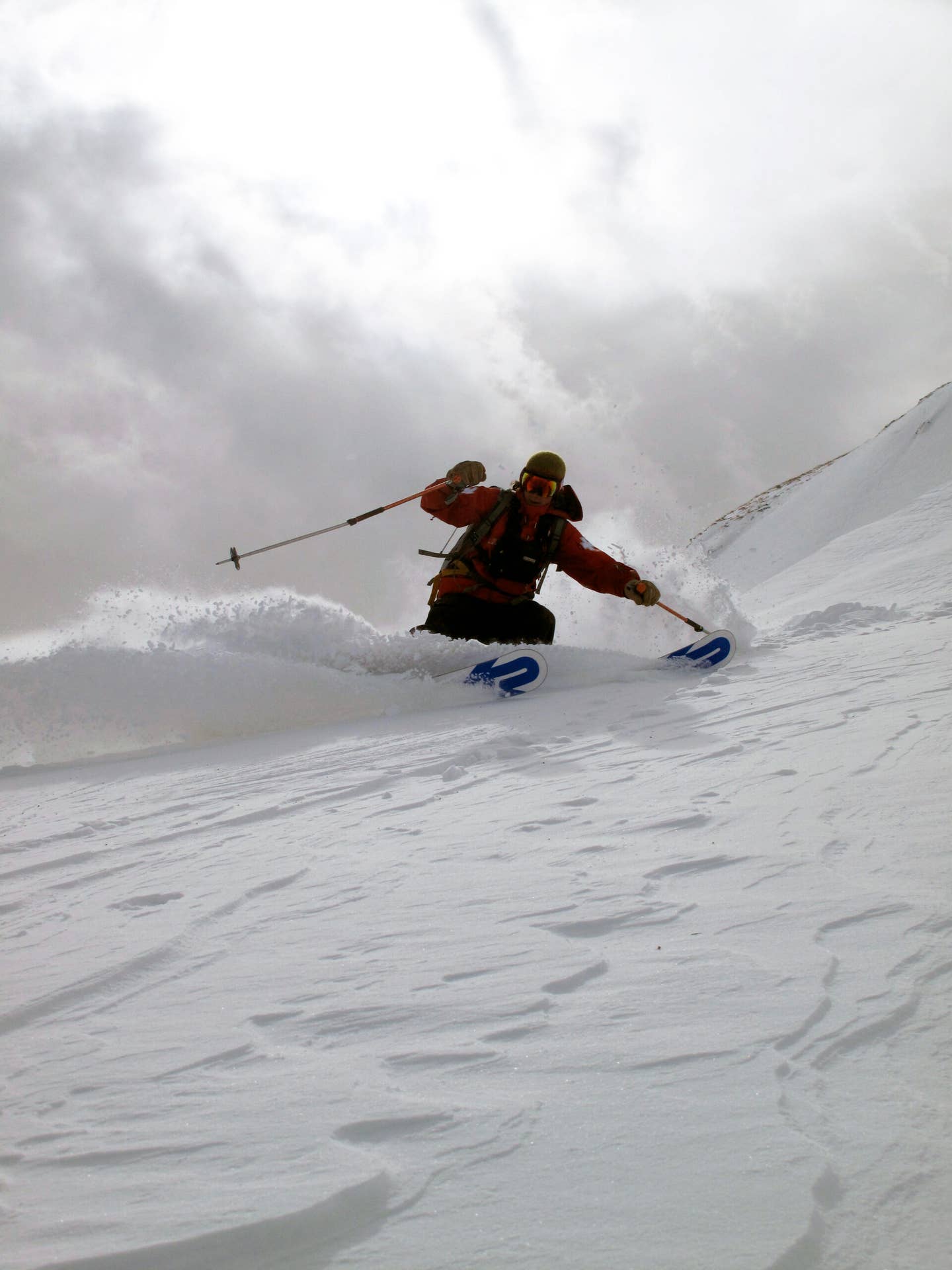 This most recent winter storm at Silverton Mountain, Colorado loaded up the mountain with as much as 2-3 feet of fresh snow! A few lucky ski patrollers jumped on the chairlift today and headed to the top of Silverton Mountain to make the first ski turns of the 2012/13 ski season. A fresh blanket of snow covered the mountain making for a fun ski day.