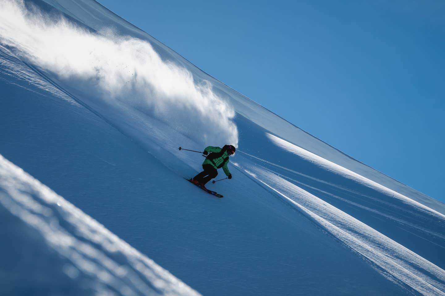 Mcnutt appreciates the added margin of safety using the Atomic STH WTR 16 binding when ripping turns like these. Nic Alegre photo.