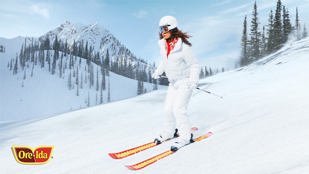 If you want to see these beauties in person before the official drop, head to Aspen Snowmass for the X Games from January 23–25. Ore-Ida will be hosting a "fry-forward" après moment. At the event, fans can actually demo the skis and, of course, refuel with some hot, crispy fries between laps.