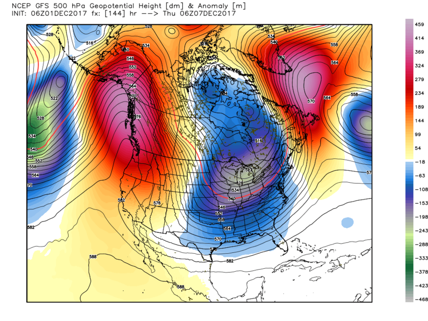 The extended pattern looks dry for at least December 9th in the West with a more active pattern setting up for the East. Thursday brings a warm system with rain/snow followed by all snow late in the storm period for New England. Models show a chance the ridge in the west will break down as we approach the middle of month but it's impossible to predict this far out. There may even be some systems that edge into Colorado around the 11th of December pushing a system through the eastern edge of the Rockies?
