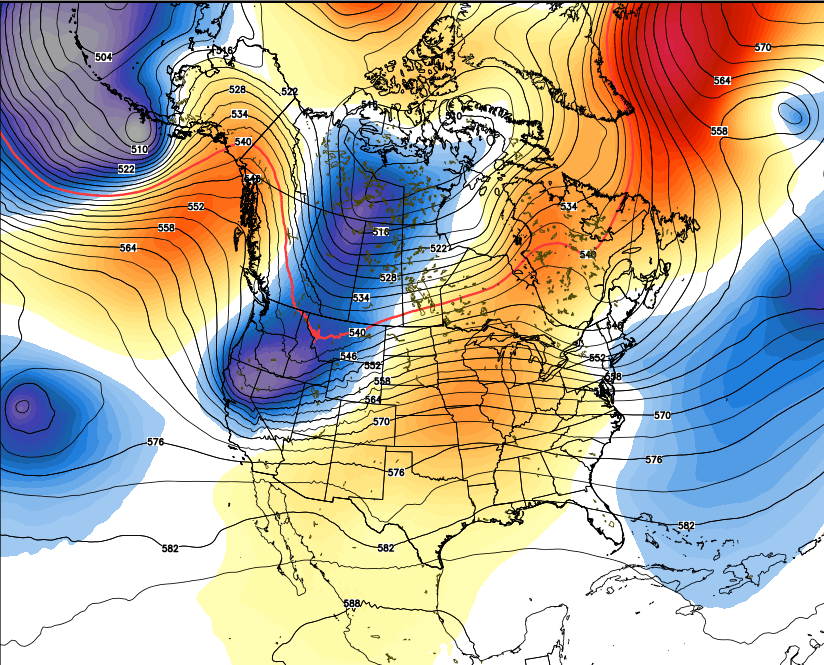 Low pressure over the northern Rockies edging a cold front south Sunday morning. Photo: Courtesy of WeatherBELL