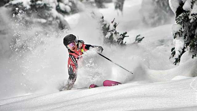 Leah Evans blasts through powder in Revelstoke, BC. Photo courtesy Leah Evans.