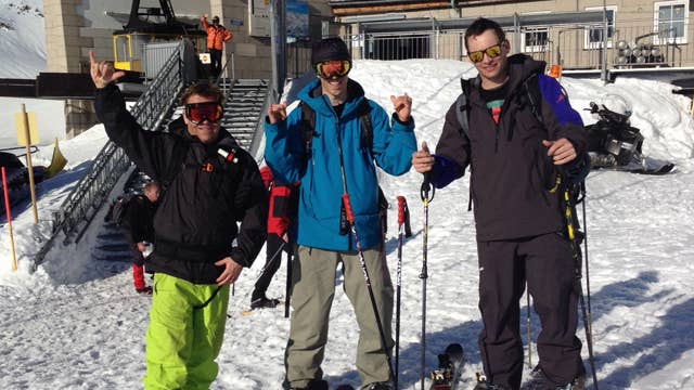Atomic Sports Marketing Manager Chris Mckearin, Jr. Communications Manager Clemens Stieboeck, and TGR Founder Steve Jones wait for the cat ride to heaven.
