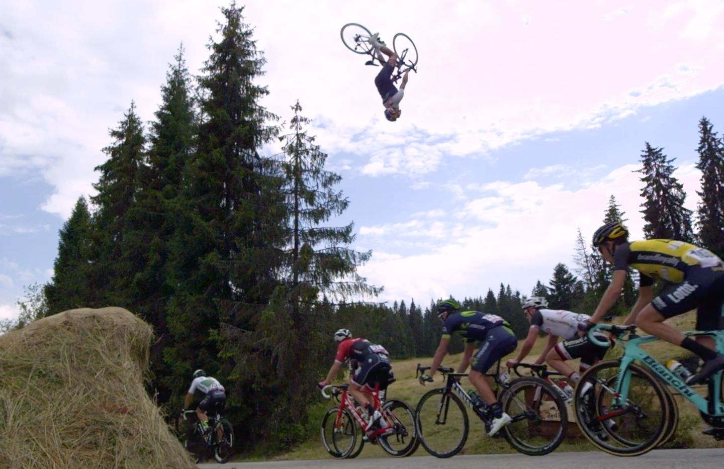 Yesterday, there was Italian madman Vittorio Brumotti alone on the edge of the Grand Canyon. Now there’s Szymon Godziek, one of the best freestyle mountain bikers in the business, flipping a road bike over the peloton of the Tour de Pologne. This is not the first time we’ve seen backflips over the peloton, but doing it on a carbon road bike is pretty next-level. Way to send it, Szymon. Lucky for us, there were enough cameras rolling to capture the action.