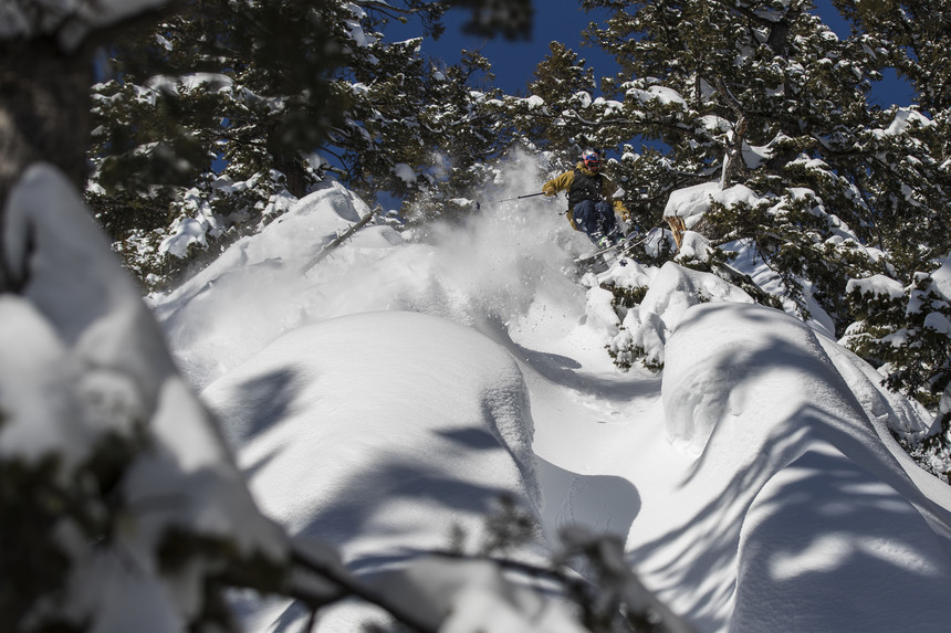 I think the reason why Johnny is so good at everything lies within his duality. He isn't afraid to try anything, or be anyone. So, subsequently, while filming, we tried everything. During the first storm cycle, we veered away from the Wyoming classic lines and powder lanes. We found new zones, even to me. Johnny found absurd tree hits and built even more absurd jumps. Areas I've looked at for my entire life all of a sudden became new. And while maybe 75% of the lines and airs attempted were a total failure in terms of takeoffs and four-point landings, they pushed our skiing (or at least made our abs stronger from the laughter that ensued after double ejections, bloody chins, and broken trees).