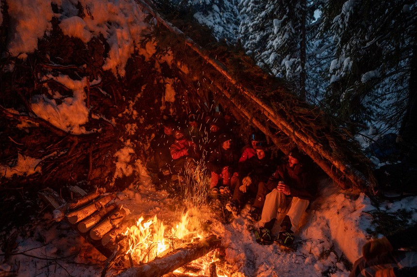 We spend a lot of time filming at or below treeline in the many locations we've been to over the years. Whether it's riding powder alleys and pillow lines in the old-growth forests of BC, or snowmobiling through lower elevation forests to access the alpine, there's a good likelihood that you might need to spend the night in the woods if something goes wrong. The good news is that the forest offers ample protection from the elements, and plenty of fuel to build and sustain a warm fire.
