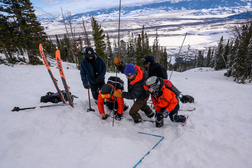 The TGR crew practicing a full avalanche rescue. Max Ritter photo.