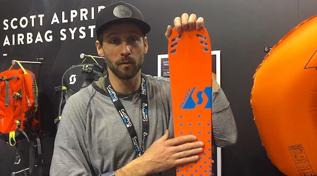 Topher Plimpton from SCOTT Sports introduces the company's 15/16 winter product highlights at SIA this year. These include a new airbag developed with the Swiss company Alpride, which they claim is simpler and lighter than most canister-based airbag system, weighing just 5.9 pounds in a 30-liter bag. They're also launching a more progressive touring ski, the Cascade 110, based off the company's Punisher ski but with a lighter core, carbon stringers, and integrated skin hooks (that's what the holes are for). They are also putting out a new goggle, the LCG Compact, with an easy lens swap system and custom fit features in a smaller package.
