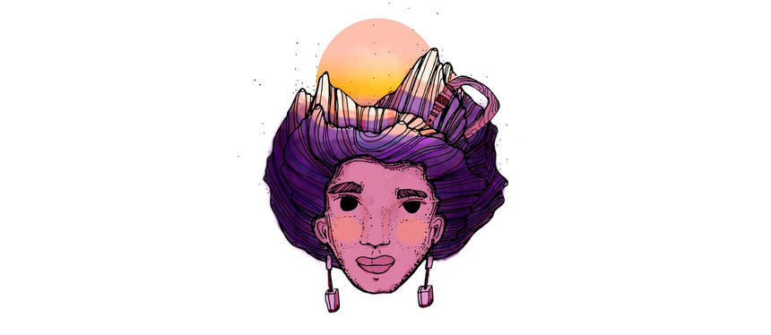 When Bell was a kid she always thought her Afro hair looked like the hills covered in pine trees. Inspired by that observation, Bell illustrated this climbing goddess for Brown Girls Climb. Brooklyn Bell Art.