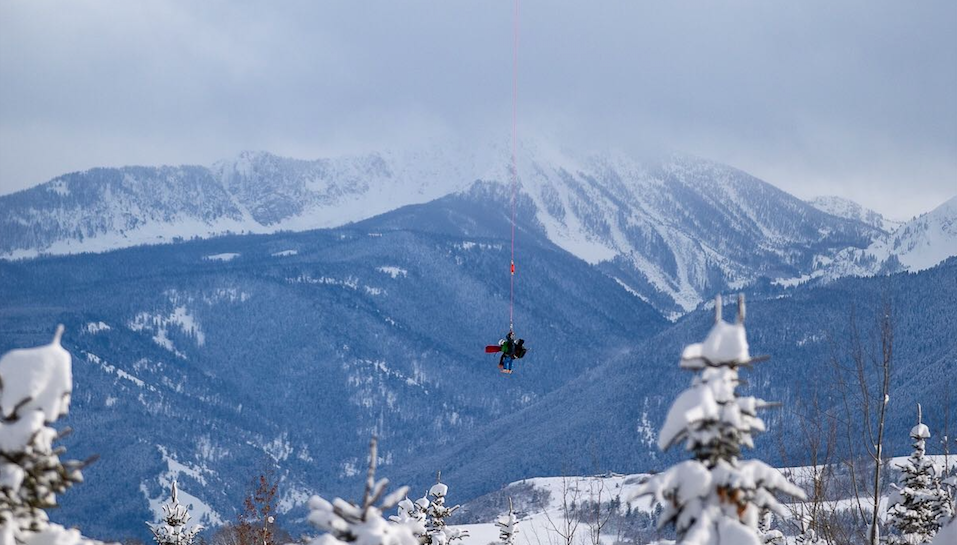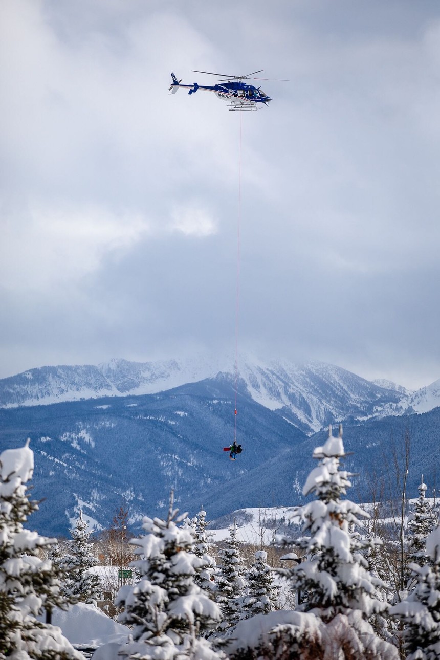 A skier is short-hauled out of Granite Canyon after being avalanched in Mile Long Couloir. Lance Coudele photo.
