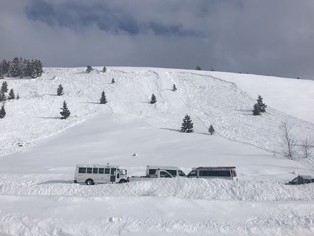 The parking lot at the Kelly campus of the Teton Science Schools was partially buried by a naturally-triggered avalanche. The slide reportedly was strong enough to move several vehicles, though luckily no one was in the lot at the time.