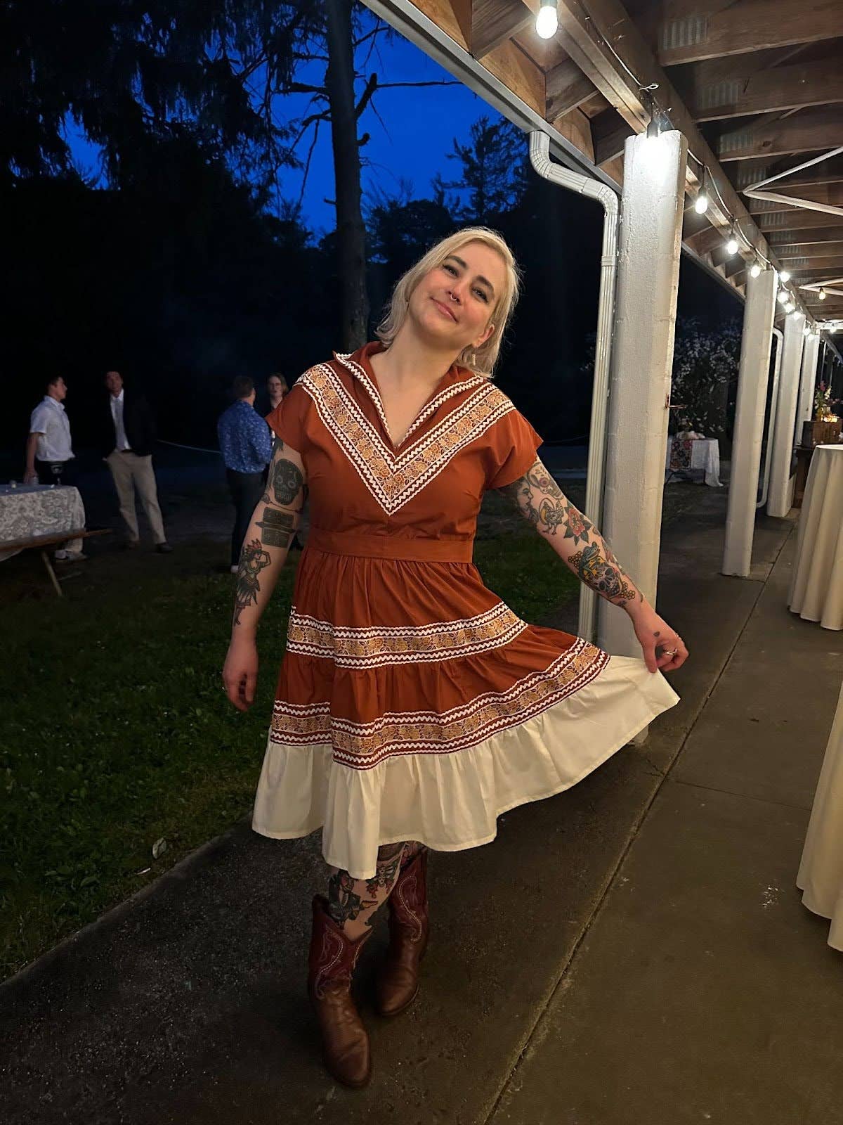 Lina: I grew up surrounded by women that embroidered and sewed, so I was drawn to the craft. I hand embroidered as a hobby for years and became interested in the western wear suits worn by country western greats like Hank Williams, Porter Wagoner, Dolly Parton and many more. This led me to discover Nudie Cohn and Manuel - they led the way and created a medium for chainstitch embroidery on clothing to shine. I learned about the machine and the process and was lucky enough to land an antique chainstitch embroidery machine around 2017, and focused on perfecting my craft.