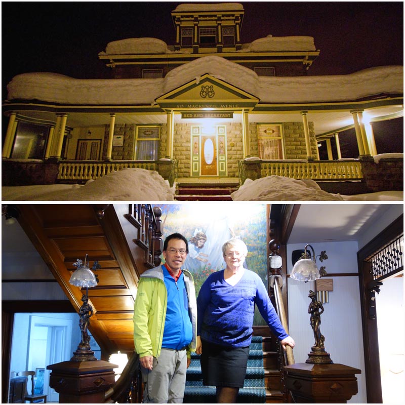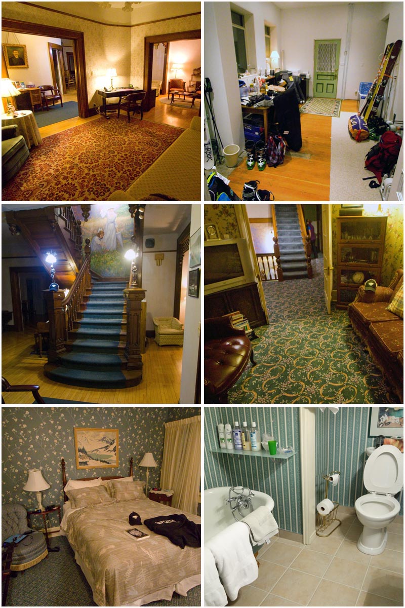 Minto Manor. Run by Edna Mae, this mansion was built in 1905, and has been a B&B since 2003. Edna Mae creates hearty breakfasts and the Mansion is quiet for a restful sleep. The old Mansion is well heated, comfortable and gets you ready for the next days outing. Since all the bedrooms are on the top floor (3rd) there is minimal noise from people walking around the bottom floors. There is a tv room on the 2nd floor, where breakfast is also served. There is a great ski storage room with boot heaters on the lower floor just off the parking lot.