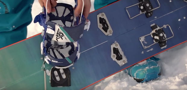 Byron Bagwell demonstrates how to set up splitboard bindings in Splitboarding 101: Pucks, bindings, skins. Film by Dylan Hart.