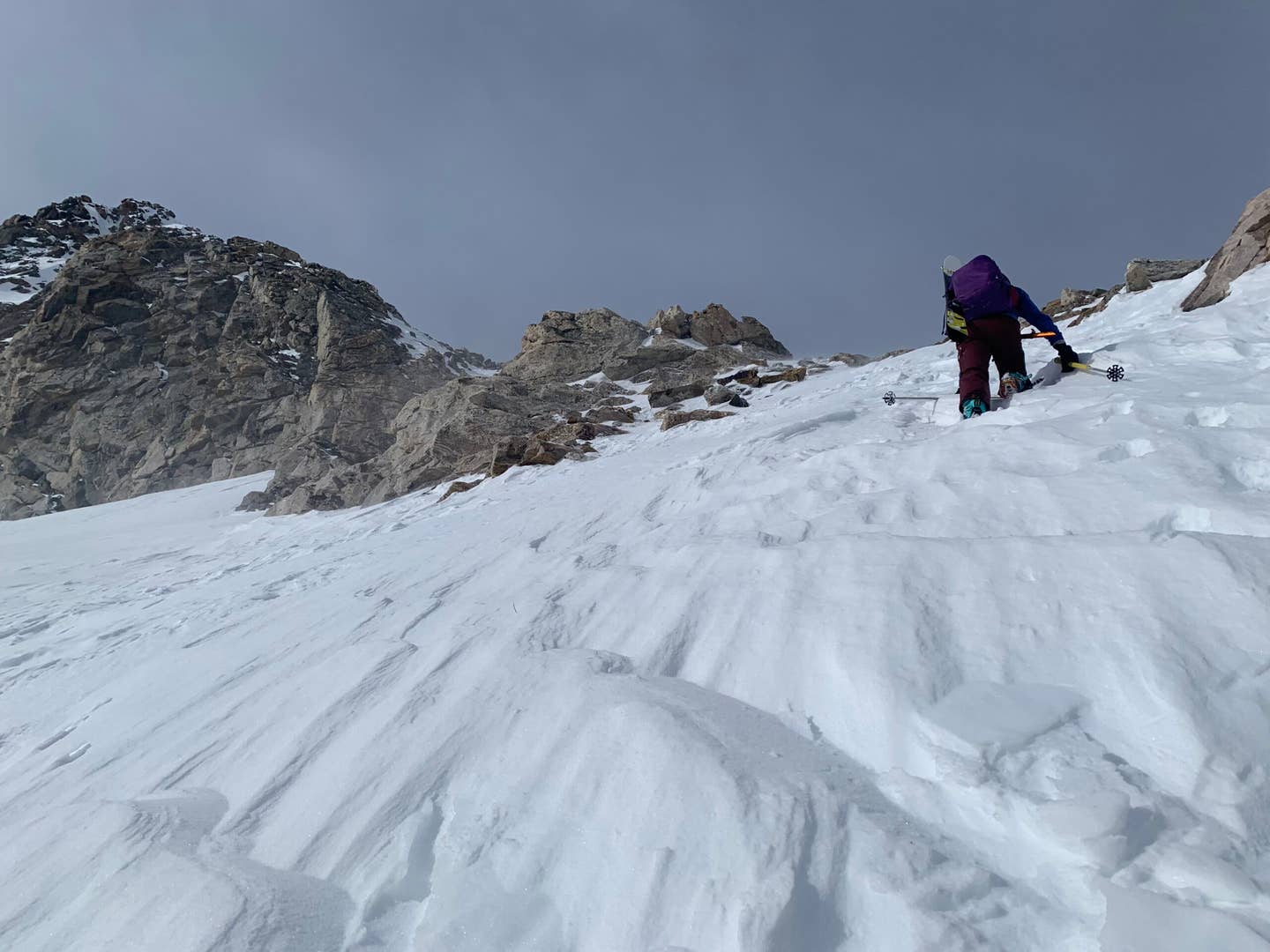 “I think this bootpack might be the best part of our whole day,” I half-joked to my ski partner Max, who was working hard not to roll his eyes as we booted up a narrow couloir in the Tetons that from afar we had deemed “chalky.”