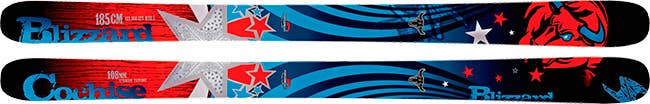 If you're looking for an all mountain ninja designed to tear up the entire mountain, then Blizzard's Cochise is the ski for you. This high performance ski is ready for action and wants to be put to the test all over the mountain. If you want to rally at high speeds, bust through crust, and plane over pow, then get a pair of these Blizzards. These bruts are quick edge to edge and their innovative Flipcore Natural rocker allows for easy turns and float. Add in sandwich sidewall construction and a full wood core and you can be assured your turns will be powerful and precise. These awesome sticks also have two sheets of Titanal to keep the vibrations at bay when maching at high speeds. The 108mm waist allows you to ski varied terrain from pristine powder to chopper chunder. These beasts are ready to get some, are you?