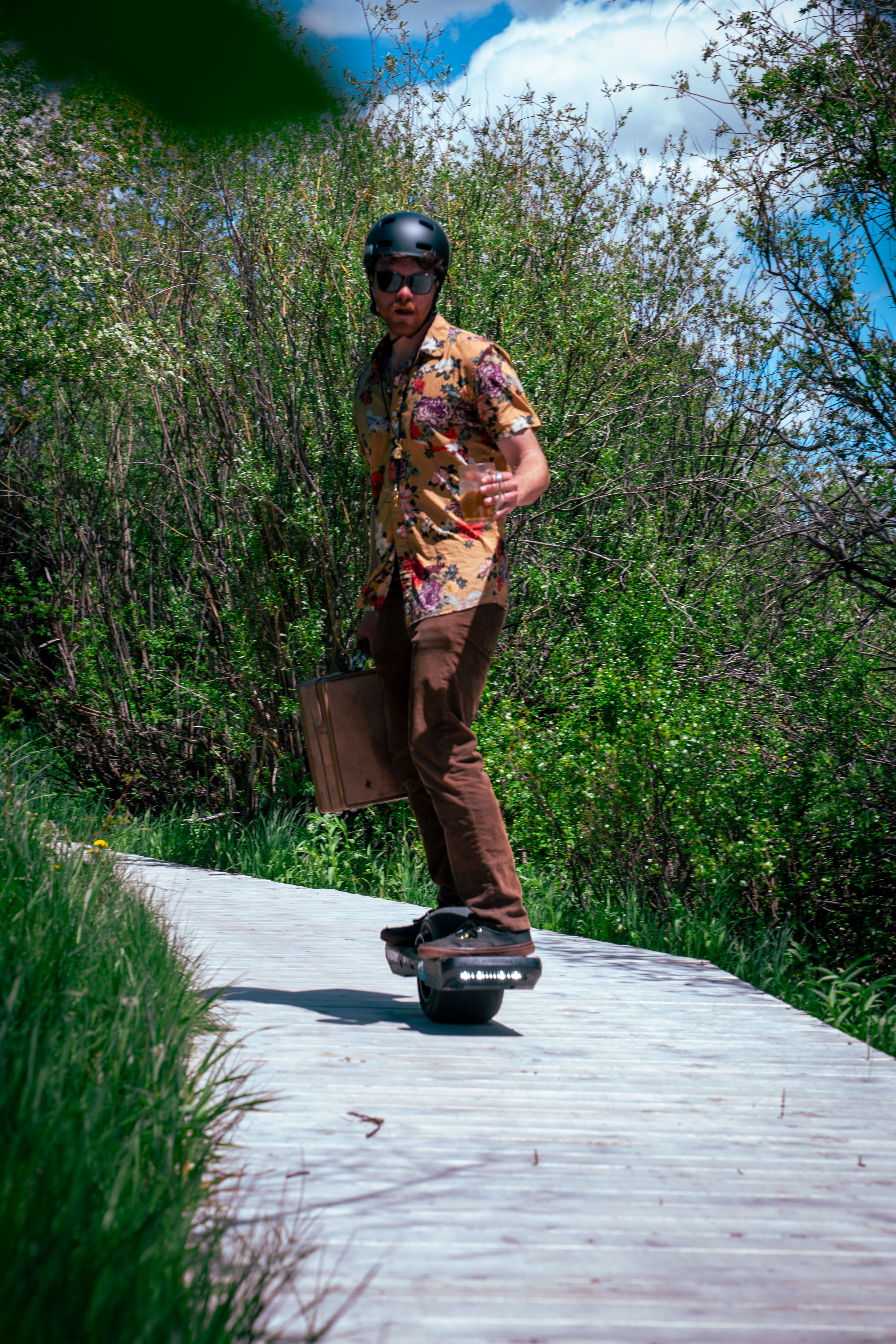 Hands-down one of the greatest advantages of the Onewheel is the hands-free travel. I commute to the TGR Studio every day on the Wheel holding my briefcase and sipping on a cup of coffee. I ride it to the grocery store and still get good turns while carrying my bags home. When I’m headed out on a film trip, I will roll my luggage behind me, with my snowboard under my arm and a backpack on. You can roll over dips, rocks, ruts, and cracks like a bicycle without holding onto a set of handlebars. The speed and utility of the Onewheel as a means of transportation, not just for the rider is honestly unmatched.