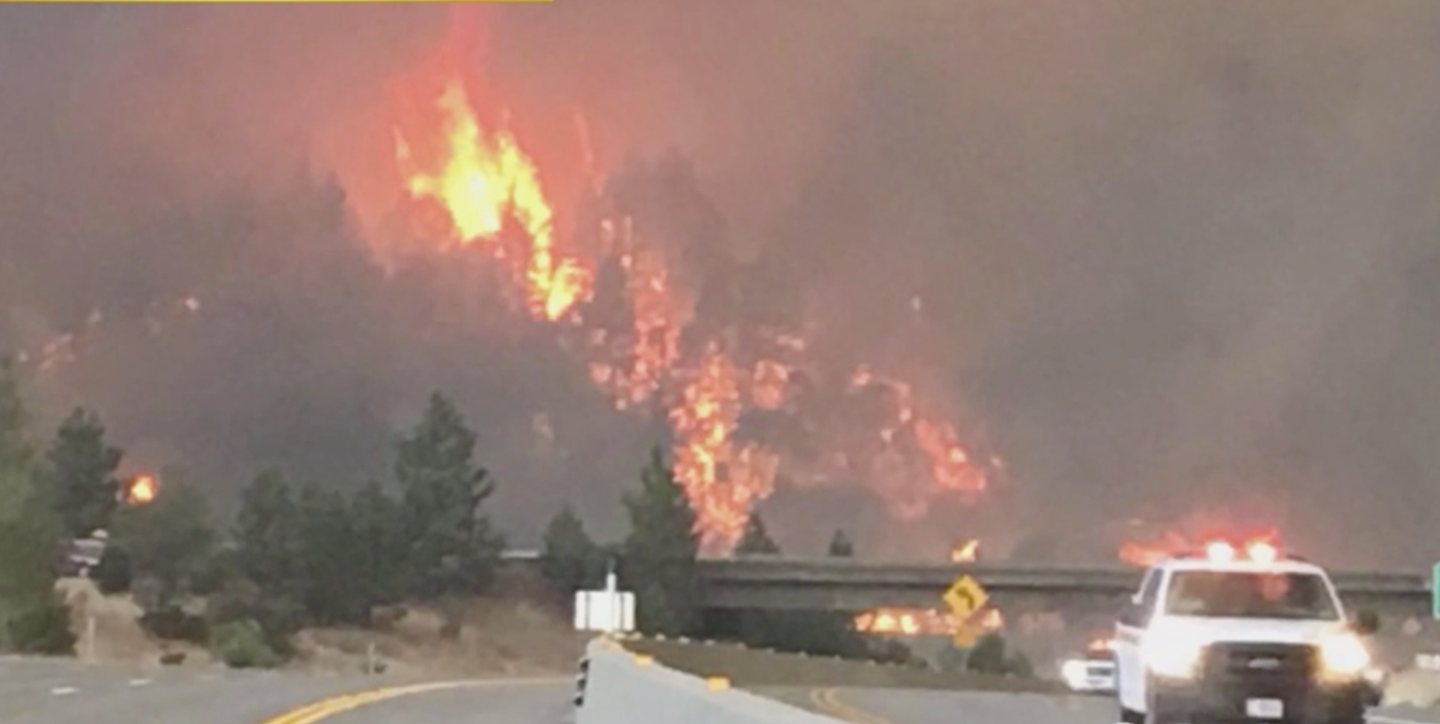 The fire next to the highway was captured in this hair-raising video from a passenger. According to