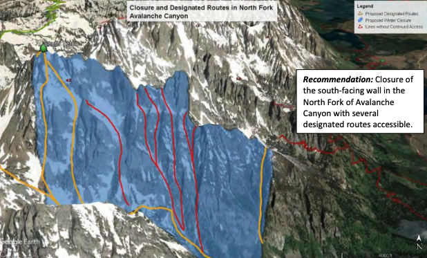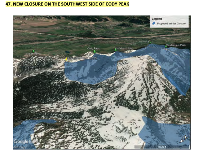 Secondary priority actions include greatly expanding the closure on Static Peak, a new closure in the Veiled Peak/Mt. Wister area, closing the North side of Avalanche Canyon (preserving access to the Four-Hour Couloir and the Amora Vida and SE couloir, while classic lines like the Nugget Couloir and surrounding chutes would be closed), a closure in the Jensen Canyon area, and a closure on the backside of Cody Peak that could directly impact the heavily-used bootpack from JHMR.
