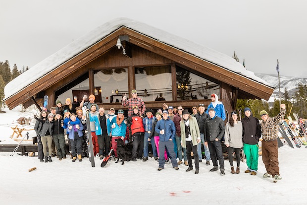 Shear and Shred team gathered outside the Maverick lodge--Dave Walker, Robert Marchesseau and Erik Borge included. Dan Armstrong photo.