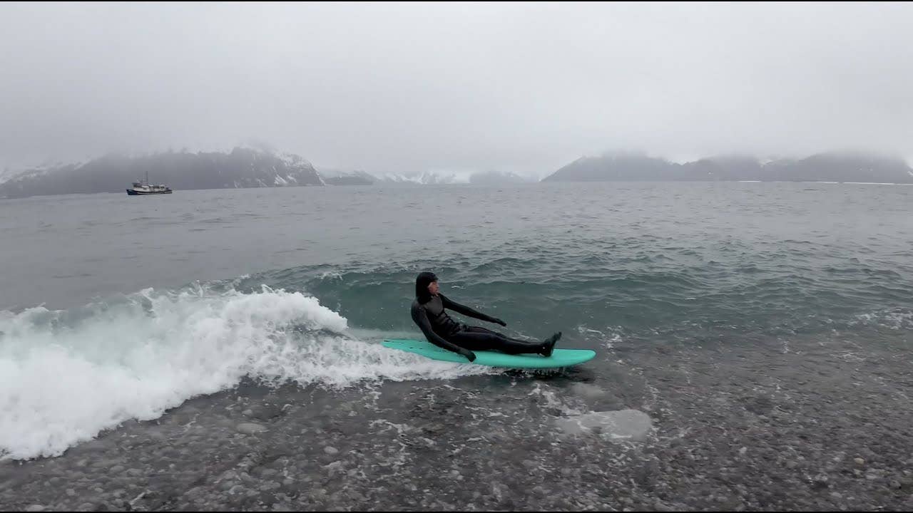 If the idea of surfing in Alaska seems a little strange, that’s because it is. Watch surf oddballs Ben and Blair scour some Alaskan islands for rideable nugs, all while braving the literal icewater. Launching from a moraine, or a clump of earth deposited by a glacier, the two pioneers of Alaskan surfing scrap some briefly rideable waves before scrambling back to the boat. Enjoy an ice-cold glass of surfing novelty.
