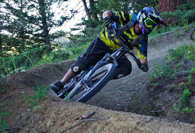 Tester Jon Grinney hitting warp speed on the Trailcrew on Big Sky's Otter Slide flow trail. Ryan Dunfee photo.