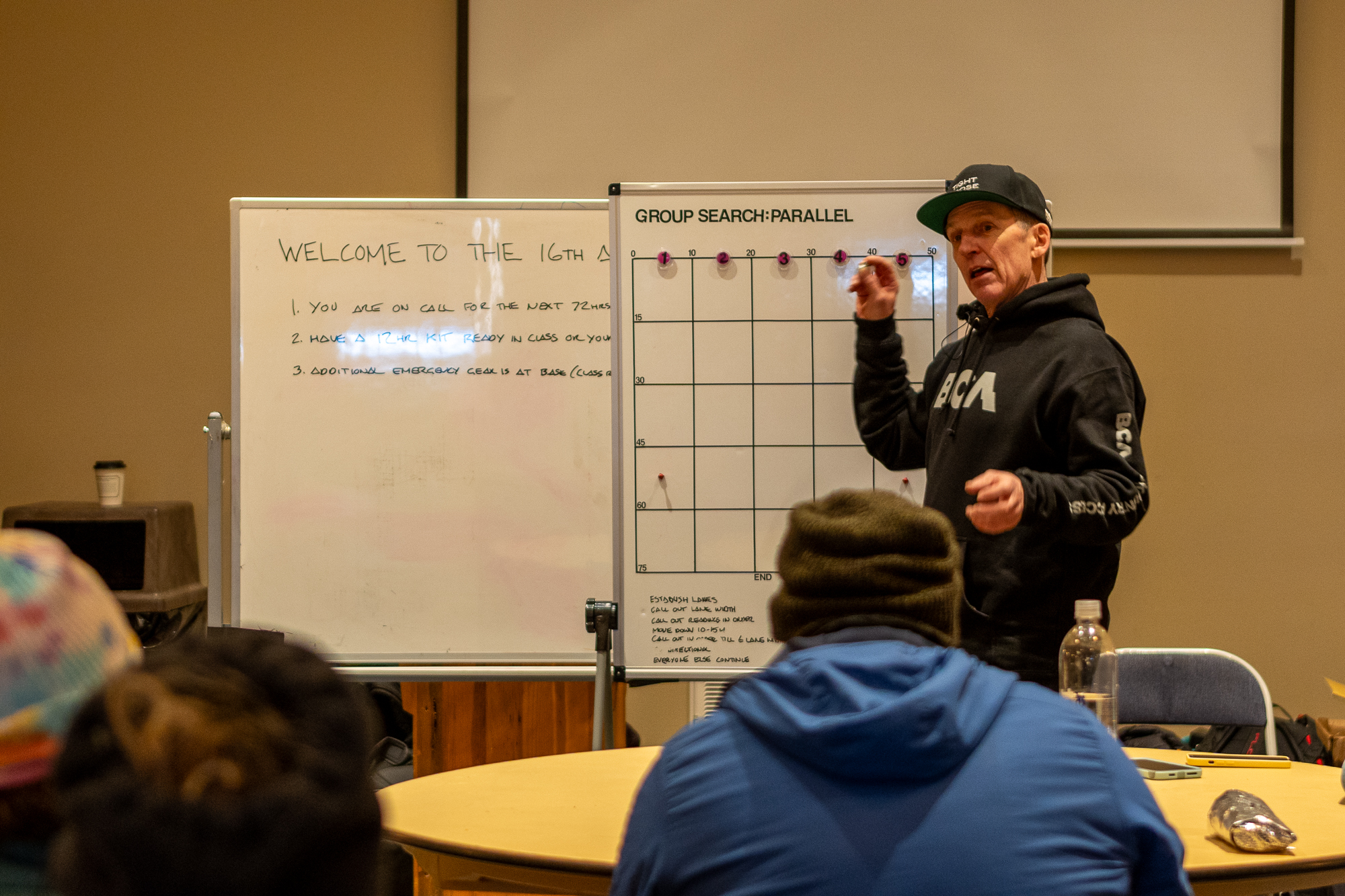 This year at the International Pro Riders Workshop, lead instructors Jim "Sarge" Conway and Jamie Weeks presented a novel beacon search technique they've had a hand in developing with Backcountry Access over the last few years. It's called the Parallel Group Search, and it's a method that instructors and guides have recently found effective in large-scale multiple burial scenarios when a group of searchers is available.