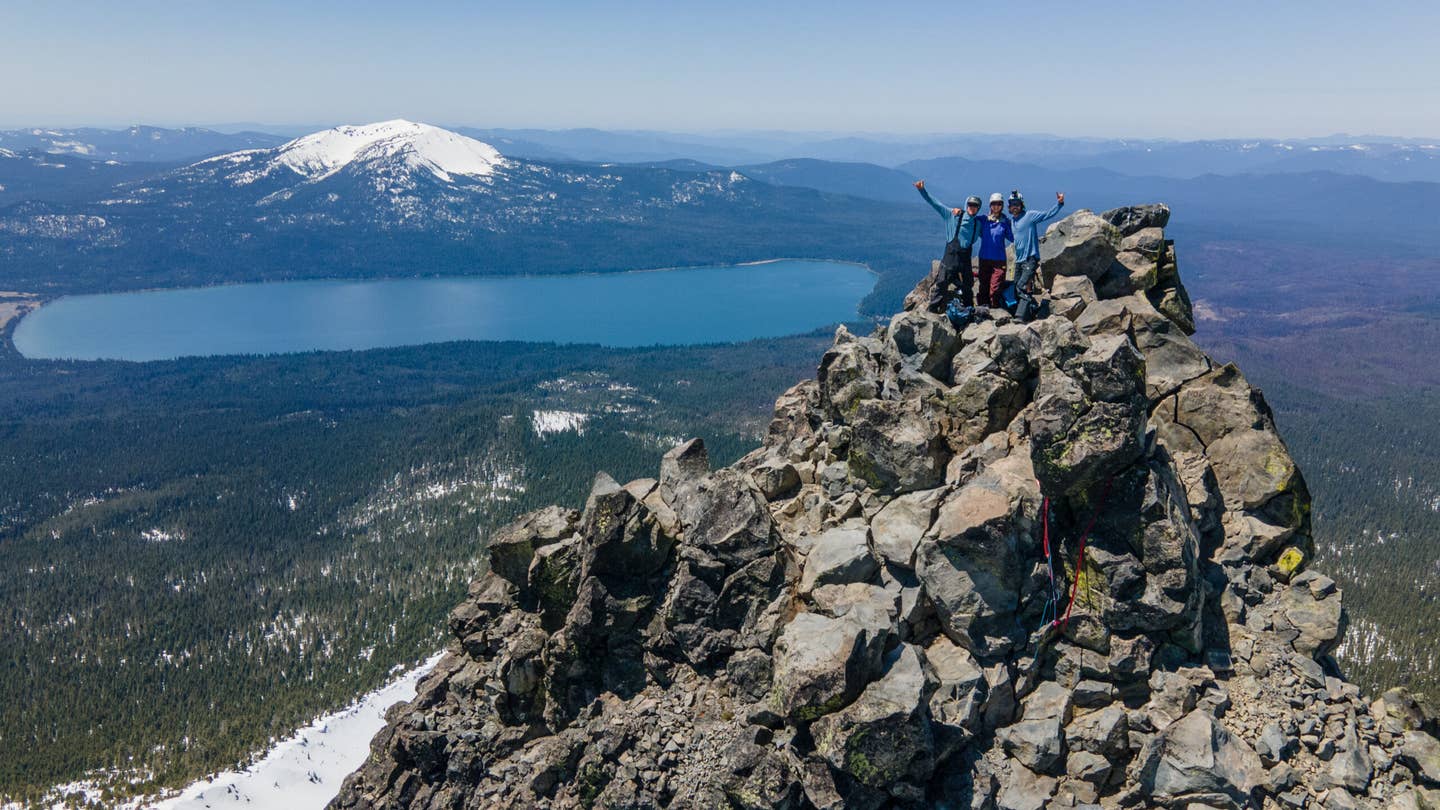 Continuing North in the Bus, Danny and Nick have now joined forces with Tailer Gray. Linking up with a fellow mountain guide and tiny home creator, Parker Smith, to get the grand tour of his backyard and favorite mountain. After a rowdy experience, they made their way North to a chosspile, Mt. Thielsen, where an exposed scramble to the summit lured them up.