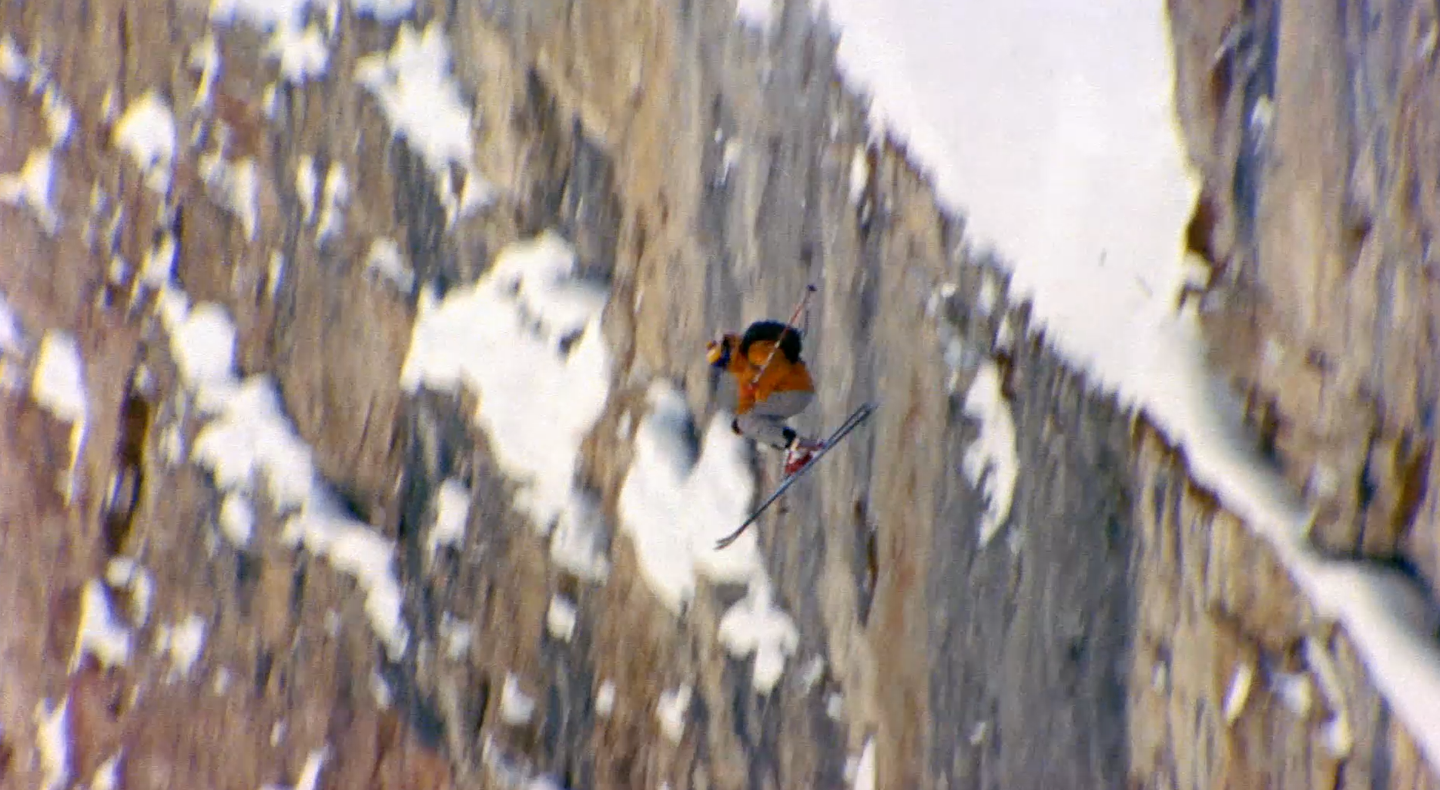 Pierre maintained the upright position until about halfway down the 255-foot cliff. Pretty much everyone knew it was one of those lines you just weren't going to ski out of.