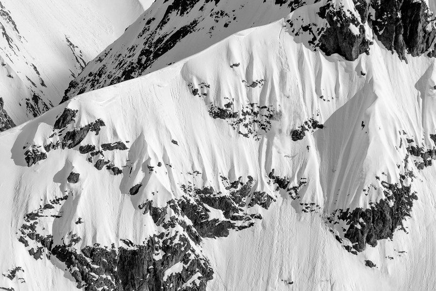 Since it had a lower snow year up there it just made everything look more treacherous and better on film. A line that is usually pretty mellow to ski and is normally all covered with snow would turn into a super sharky rock face but with a thick spine on it. We were fortunate to get some top coats of snow so it turned into some big mountain gnarly lines type of trip. It's definitely Alaska so everything is cool.