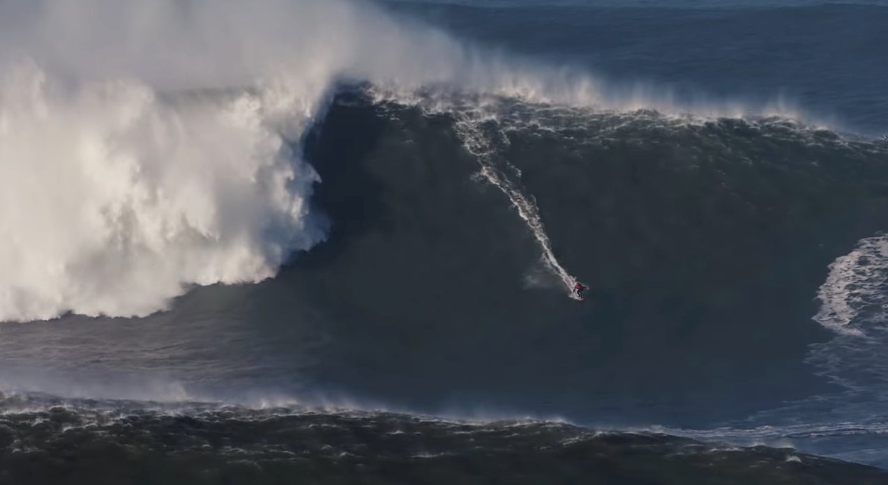 The rocky coastline of Portugal plays home to one of the largest waves on Earth, just off the small town of Nazaré. This winter's swell forecast called for January 18th to be one of the biggest surf days on record, and it didn't disappoint. The Portuguese powerhouse known locally as Praia do Norte showed up with some of the most powerful waves to ever grace the ocean, and a collection of madmen were there to surf it.