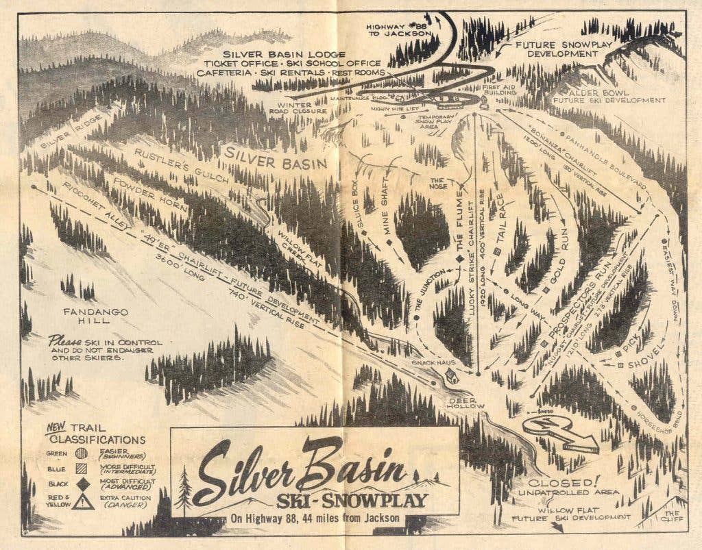 Located near Kirkwood, Iron Mountain (originally Silver Basin) was known for its "inverted" layout—you parked at the top and skied down.