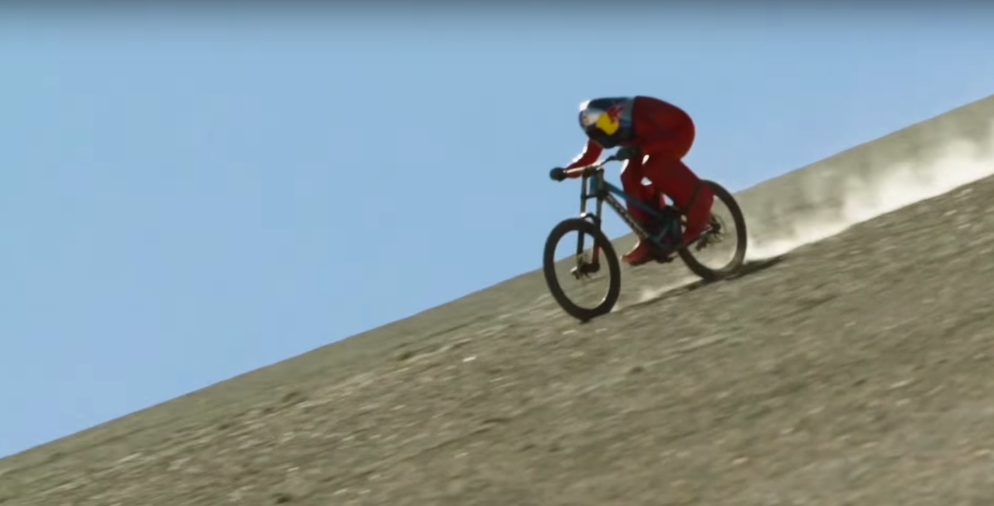 Austrian speed demon Markus Stöckl just set a new record for fastest speed attained on a mountain bike. Deep in Chile’s Atacama Desert, Stöckl hopped aboard a fairly standard mountain bike and pointed it straight down a massive hill and let go of the brakes. A few seconds later, he reached 167 km/h – for those not familiar with the metric system that’s 103 mph. While there were no special modifications on the bike, Stöckl donned a speed suit straight out of a cheap science fiction flick. While it may look ridiculous, aerodynamics becomes such a factor in gaining extra speed that every advantage counts.