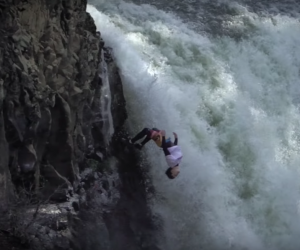 Waters are raging at McCloud Falls in Northern California and these daredevils are enjoying the torrent after heavy snowmelt this winter.