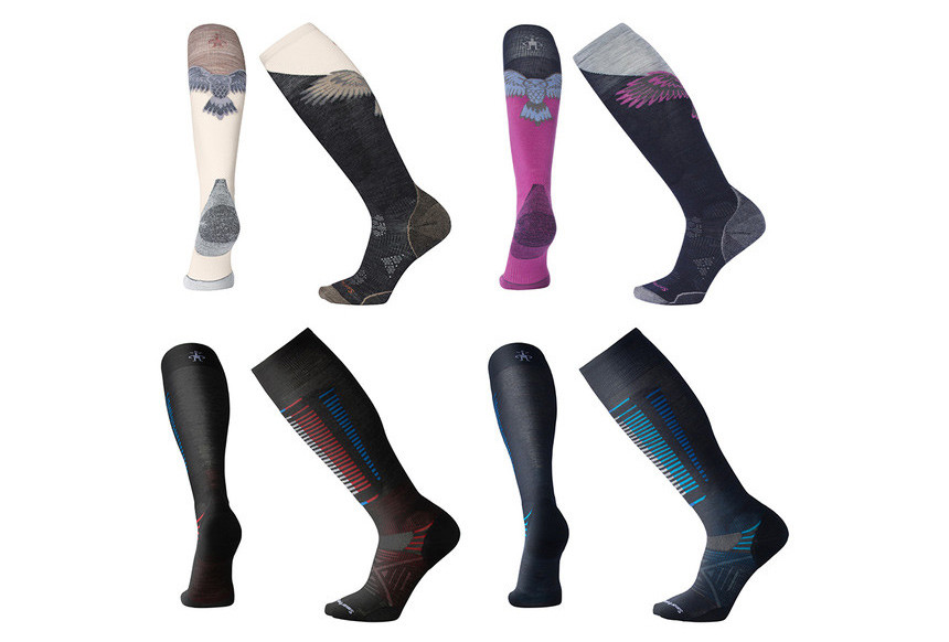 Angel's Smartwool PhD® Pro Freeski socks are available in four colorways. The women's specific fit includes her personal favorite, the bird of prey design. Smartwool photos.