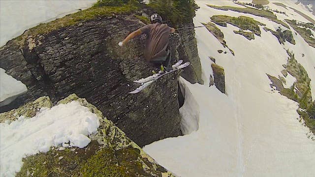 Adrian Dingle is pretty damn serious about skiing. Serious enough to tote all his ski gear on his back way up into Glacier National Park and camp up under a tarp so he can spend his days building all kinds of awesome drops, quarterpipes, gap jumps, and rock jibs by hand–often solo–and ski the shit out of them as the glacier melts underneath him.