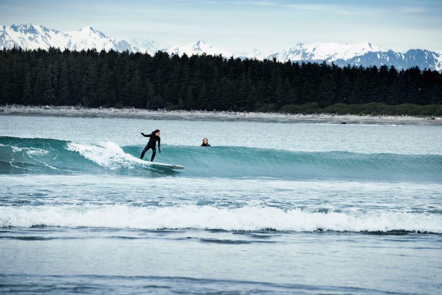 During week two they traded their snowboards for surfboards and packed up for Yakutat, Alaska. The tiny fishing village is a world-class surfing destination hidden away. With no major roads, the only way in or out is by ferry or plane. But coming out here is worth the extra effort, particularly for the views. The stunning Saint Elias mountains—the highest coastal mountain range on Earth—dominates the horizon. Sure, the water might be a bit chillier than Baja or Hawaii, but the experience, as the girls learned, is certainly one-of-a-kind. Plus, the passionate locals like Jack Endicott, who owns Icy Waves Surfing, made sure the crew was equipped with everything they needed for a fun time on the beach.