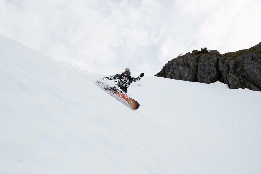 Eventually she couldn't shake the need for the freedom and creativity of out-of-bounds terrain, and retired from competing altogether to explore mountain ranges throughout the world. Being in the backcountry reignited her love for the sport, and she dedicated herself to the discipline. Transitioning from slopestyle riding wasn't easy, but Beaman was tenacious—and still is. Now she's one of the most respected female big mountain snowboarders out there, with stacked segments in the acclaimed all-female snowboard movie Full Moon and Van's Listen to the Eyes. Steadily, she's even taken on the role of mentor, eagerly shepherding the next generation of big mountain riders like good friend Mary Rand. "I've followed her career and she's always been one of the top female riders I've looked up to," Rand explained. "She's always down for a good time and adventure."