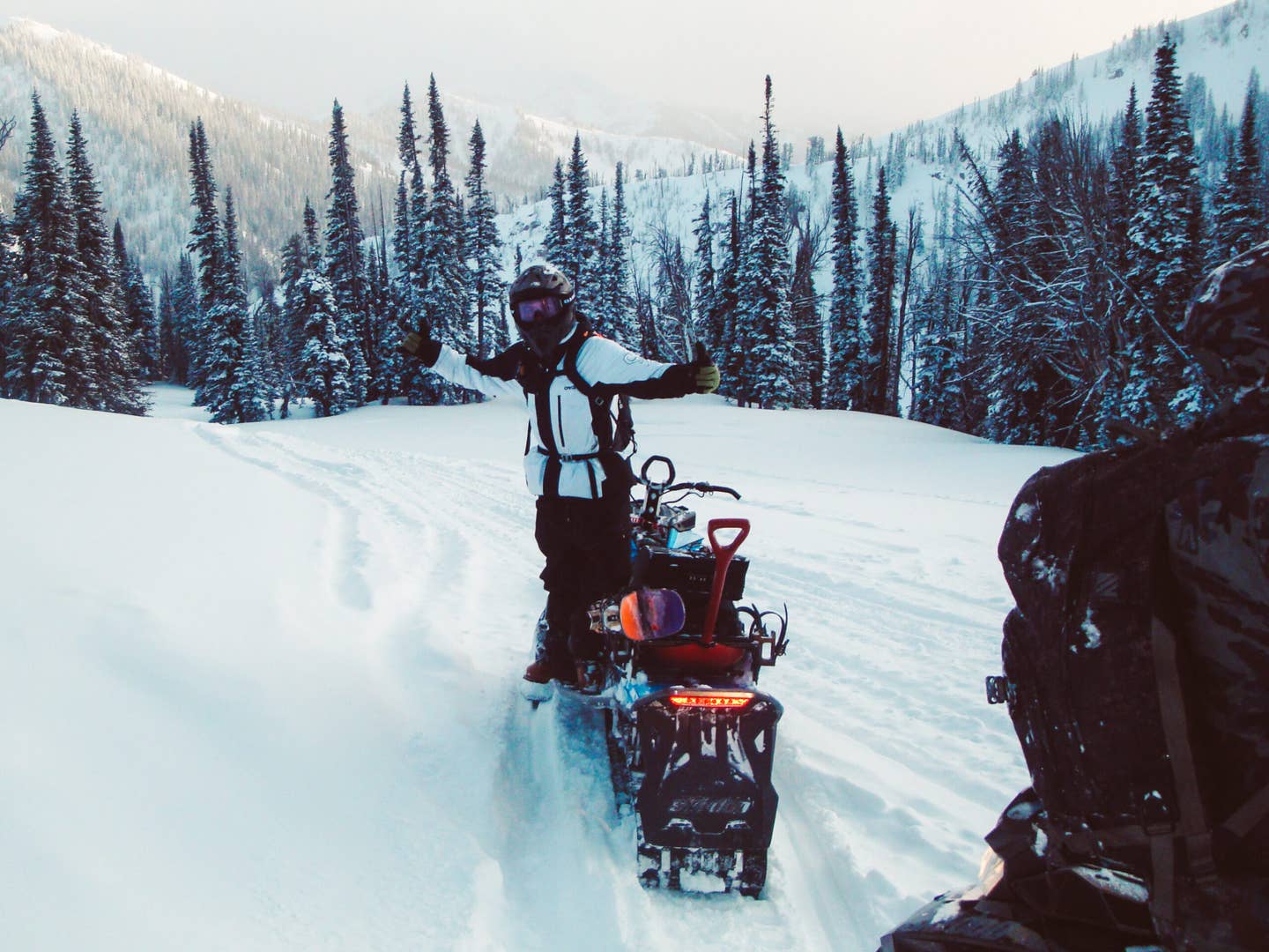 Jack: When we were in Wyoming it was so cold, and every day of that trip Mac Forehand wanted to get out on snow earlier. On one of the days when we pulled up to the trailhead at 6:15 a.m. it was –16°F. When we started our very cold and pretty dark approach into the zone, about 10 minutes in, I looked back at my sled rack to realize my rack straps had broken due to the cold, and I had lost my tripod. I was able to find the tripod quickly, which was good, but when I look back at the Wyoming trip I will always remember how cold it was out there. I even double-socked for the first time in my life, and also learned that tuffys are great for standing on when you are in negative temps all day.