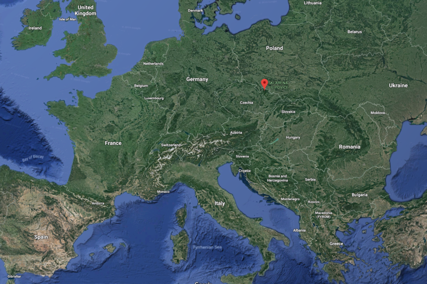 Skipark Filipovice is located in northern Czechia, near the Polish border. Google maps graphic.