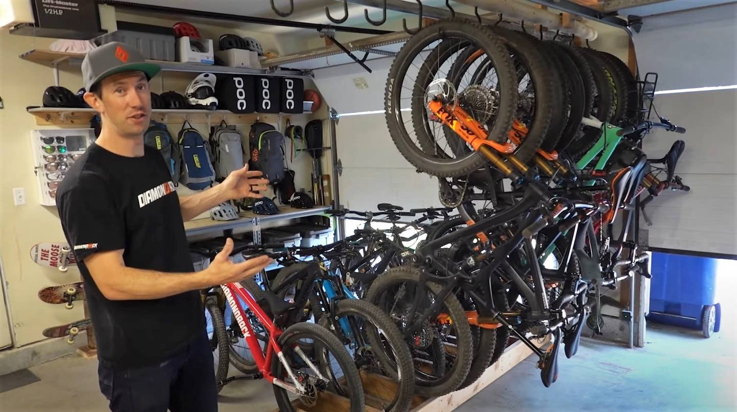 Lovingly built using every bit of knowledge and experience gained over the course of a multi-decade biking career, Porter's garage contains no less than 16 bikes, and every conceivable tool one could use to maintain them. If you're feeling jealous, just wait till you hear about the backyard jump-line... Between his workshop and private bike park, Porter could probably spend months without leaving his property—and may have the opportunity to do so thanks to COVID.