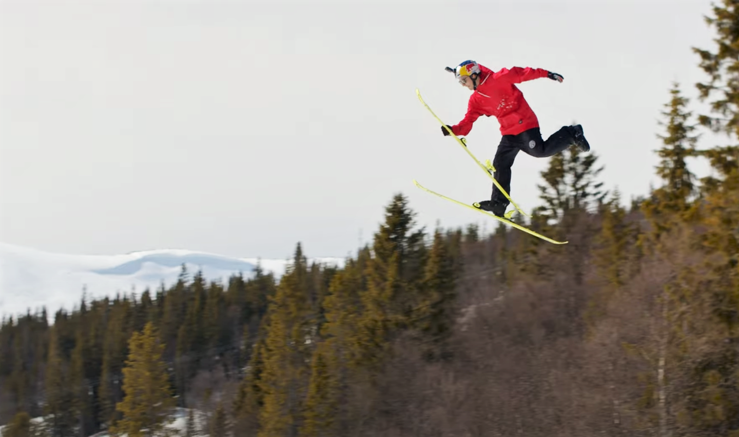 Apparently midair ski removal is less impossible than it seems, though, because Jesper Tjäder managed it. Here's a clip of the SSX trick that he's imitating: