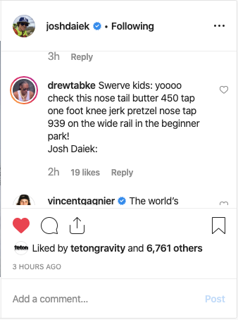And we also have to shout out to Drew Tabke for keeping it real in the Instagram comments: