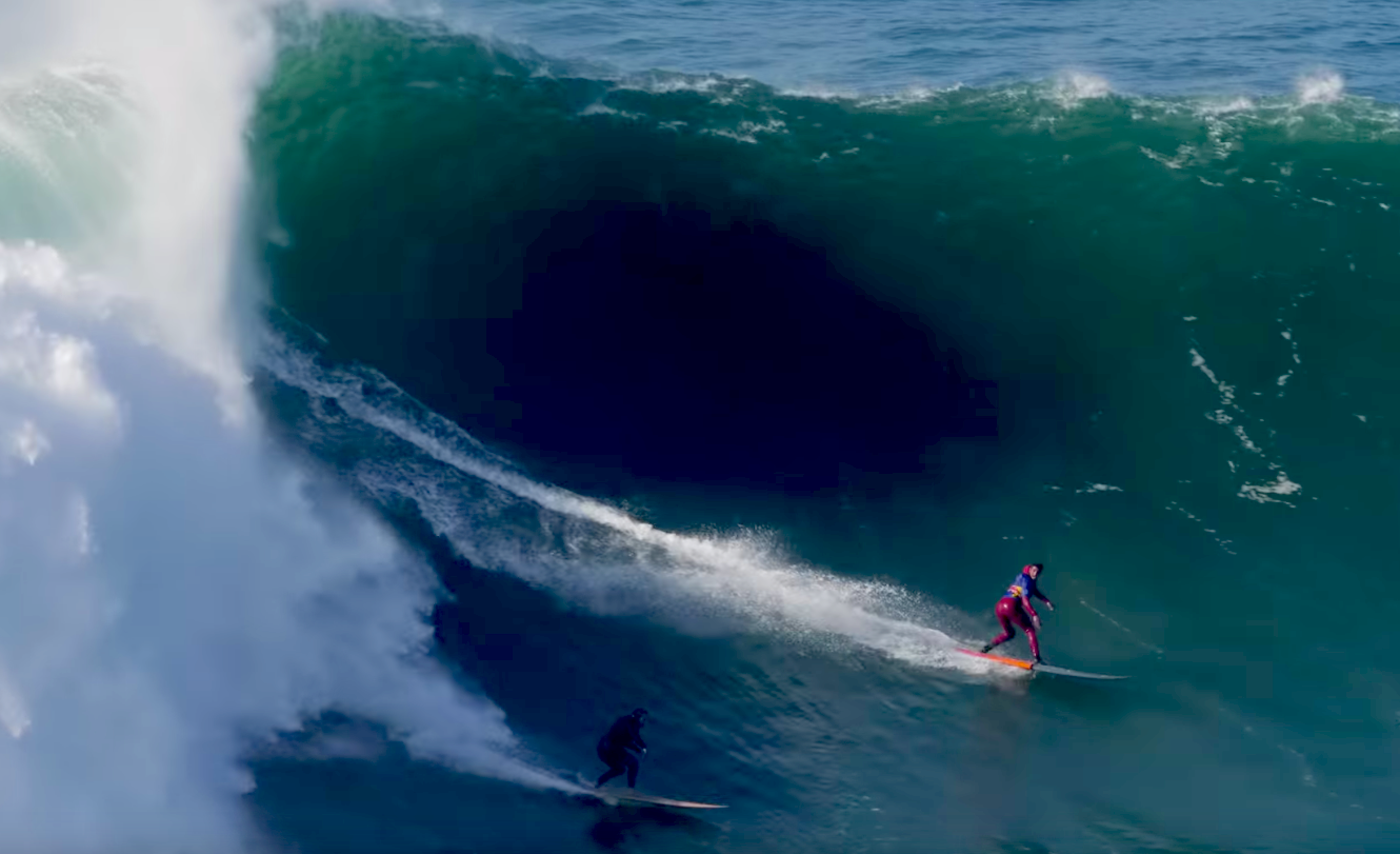 After the massive swell that hit Nazaré, Portugal in November 2018 provided for one of the best big-wave surfing events in history, the competitors and their friends, including Kai Lenny and Grant “Twiggy” Baker took advantage of lingering conditions to ride the waves in an unforgettable paddle session.
