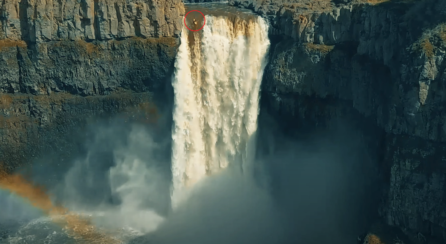 How big? Try world record-equaling. One of the video's many highlights is Knox taking on Palouse Falls, a nearly 200-foot waterfall in southeastern Washington State. For the record, that's significantly taller than Niagara Falls.