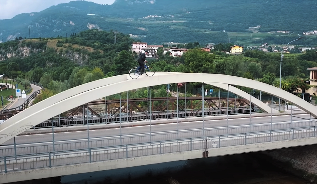 The story behind Andrea Maranelli's new trials-biking edit is that he's starting at a new job, but realizes that he needs to bike to work to avoid waiting for a delayed train. This all makes sense, leading one to expect a Fabio Wibmer-style edit where he's taking ludicrous shortcuts while leveraging trials riding skills.