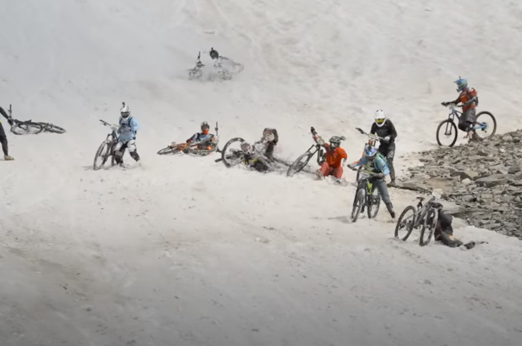 We’ll admit one of our favorite mountain bike events of the year doesn’t really involve a lot of pro riders. Every year, a group of evil geniuses in France organize a mass-start enduro race that begins atop the Alpe D’Huez glacier, with hundreds of riders navigating a steep snow slope before converging on an arduously long trail descent to the valley floor. Of course, putting hundreds of riders on a glacier together is a sure recipe for carnage – so check out some of the best bails from the 2022 race.