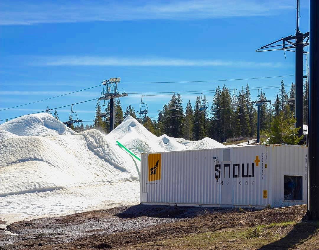 The Snow Factory freezes water super quickly, and puts it out as ice, which is then broken down to spit out… drum roll… snow. It makes about 2.3 tons per hour, which basically blankets the summer camp area with a foot of snow every two to three days. The machine uses just 12 gallons of water per minute, which is about the same a couple garden sprinklers use. The bonus: the water’s got no additives or chemicals, and it’s locally-sourced; Boreal uses water from its own wells. What melts returns right back to the resort’s reservoir. This is the farm-to-table of snowmaking.