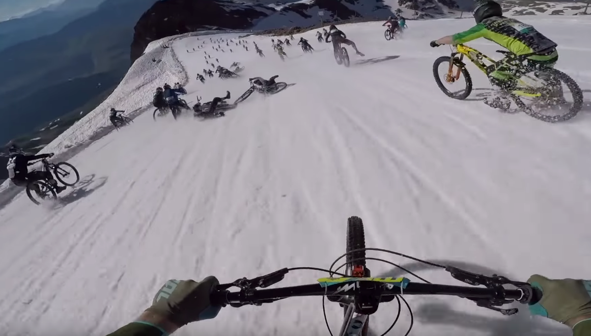 For those of you who don’t know about the Megavalanche, it’s likely the rowdiest race you’ll ever see on two wheels. Mass tart. Crashes. Glaciers. Rocks. Crashes. Oh, and did I mention carnage? There’s really not much else to say. Take a few minutes to appreciate the gnar, and please pardon Ben Deakin’s French.