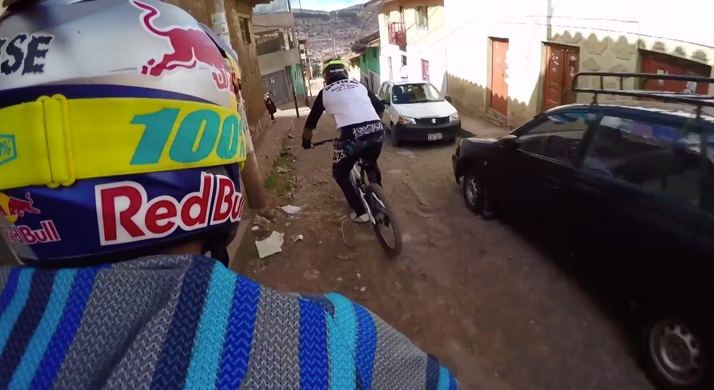 All those urban races in recent years have certainly got our attention due to the inherent gnar factor, but what do the athletes do to train for that sort of thing? Well, rip through the streets of South American cities on their own, building all kinds of ridiculous features and hitting them at full speed. Aaron Chase and his crew show us how it’s done deep in the Andes Mountains on the streets of Cusco, Peru. They dodge traffic, dogs, and locals, and find some seriously rowdy lines in the city.